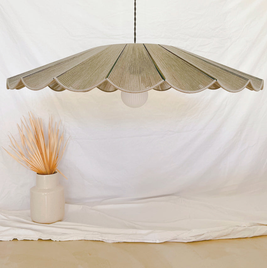 The lampshade is hand weaved with cotton. It is a french factory. (55 marais & green structure)